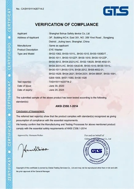 China Shanghai Bohua Safety Device Co., Ltd Certifications